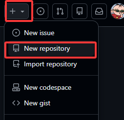 新建一个Github仓库,找到右上角的加号并新建仓库