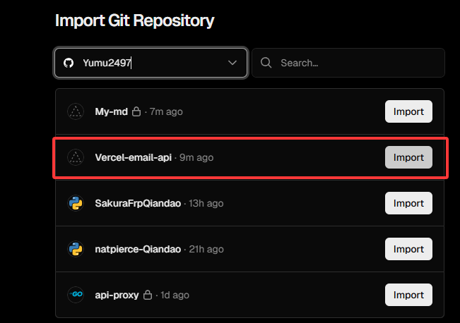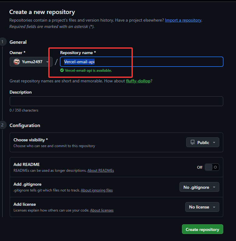 命名并创建,我这里取名为Vercel-email-api