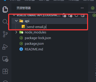 在左侧文件树新建 api/send-email.js