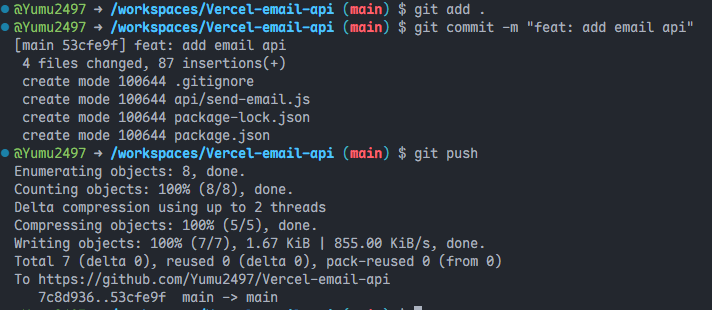 git add .git commit -m "feat: add email api"推送: